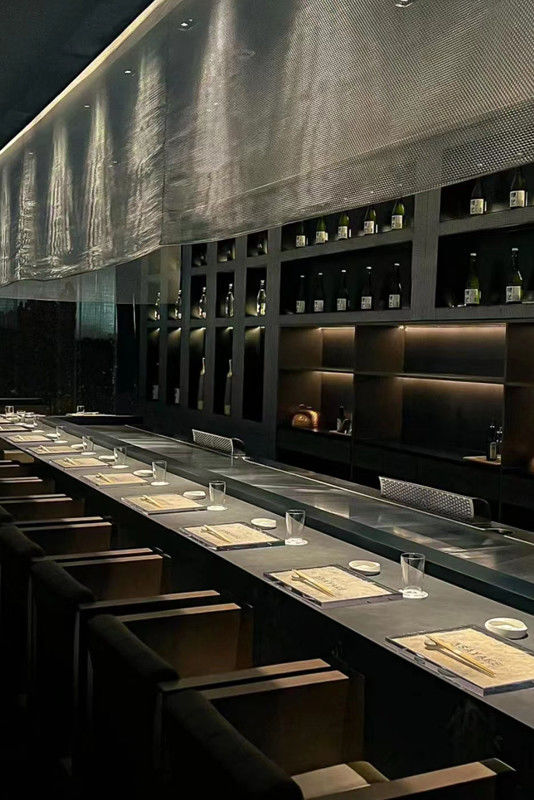 室内 テパンヤキ グリル直角形 7-12 席 装飾付きテーブル